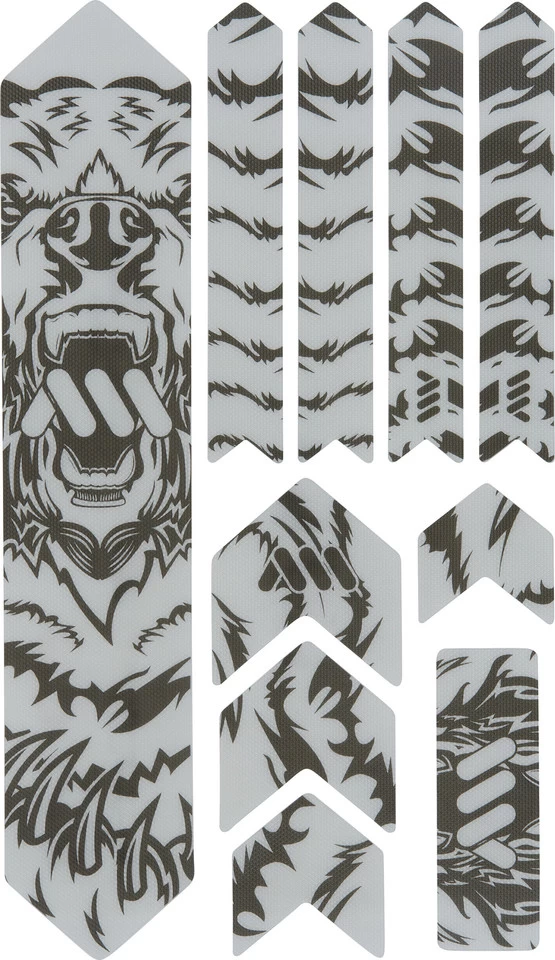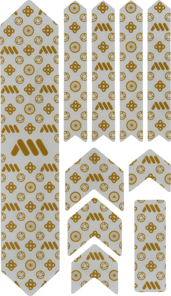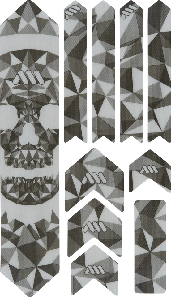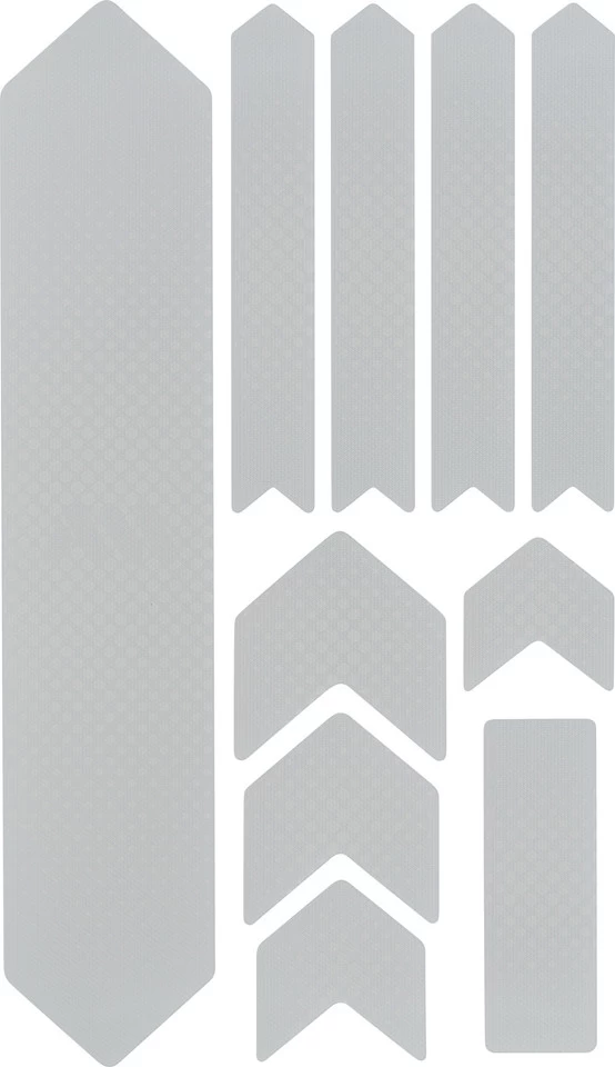 Die Rahmenschutzaufkleber sind aus hochstabilem, selbstklebendem und halbfestem PVC gefertigt. Die Honigwaben-Struktur gibt ihnen zusätzlich eine schlag- und abriebfeste Oberfläche. Die verschiedenen Formteile lassen sich auch auf komplexen Rahmenformen anbringen und helfen das geliebte Bike vor Beschädigungen zu schützen.