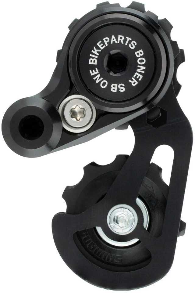 Technische Daten Kettenspanner:Einsatzbereich:DownhillMaterial:Aluminium (EN AW 7075-T6)Ritzelgrößen:13, 14 ZähneEinstellbereich Kettenlinie:0 – 18 mm, stufenlosKompatibilität:Shimano Freilaufkörper mit HG-Verzahnung9/10/11-fach KettenFeatures:sehr hohe SpannkraftArretierung des Käfigs mit 6 mm Innensechskant-Schlüssel zur leichteren Demontage des Hinterradsstufenlos einstellbare Ausrichtung zum Ritzel (Einstellbereich 18 mm)gekapseltes Spannsystem (Drehfeder kann nicht verschmutzen und dadurch stagnieren)einfache Montage am Schaltaugehochfeste Al-Legierungen: Konstruktion besonders haltbar und robustHerstellernummer:SBO-G1BR-000