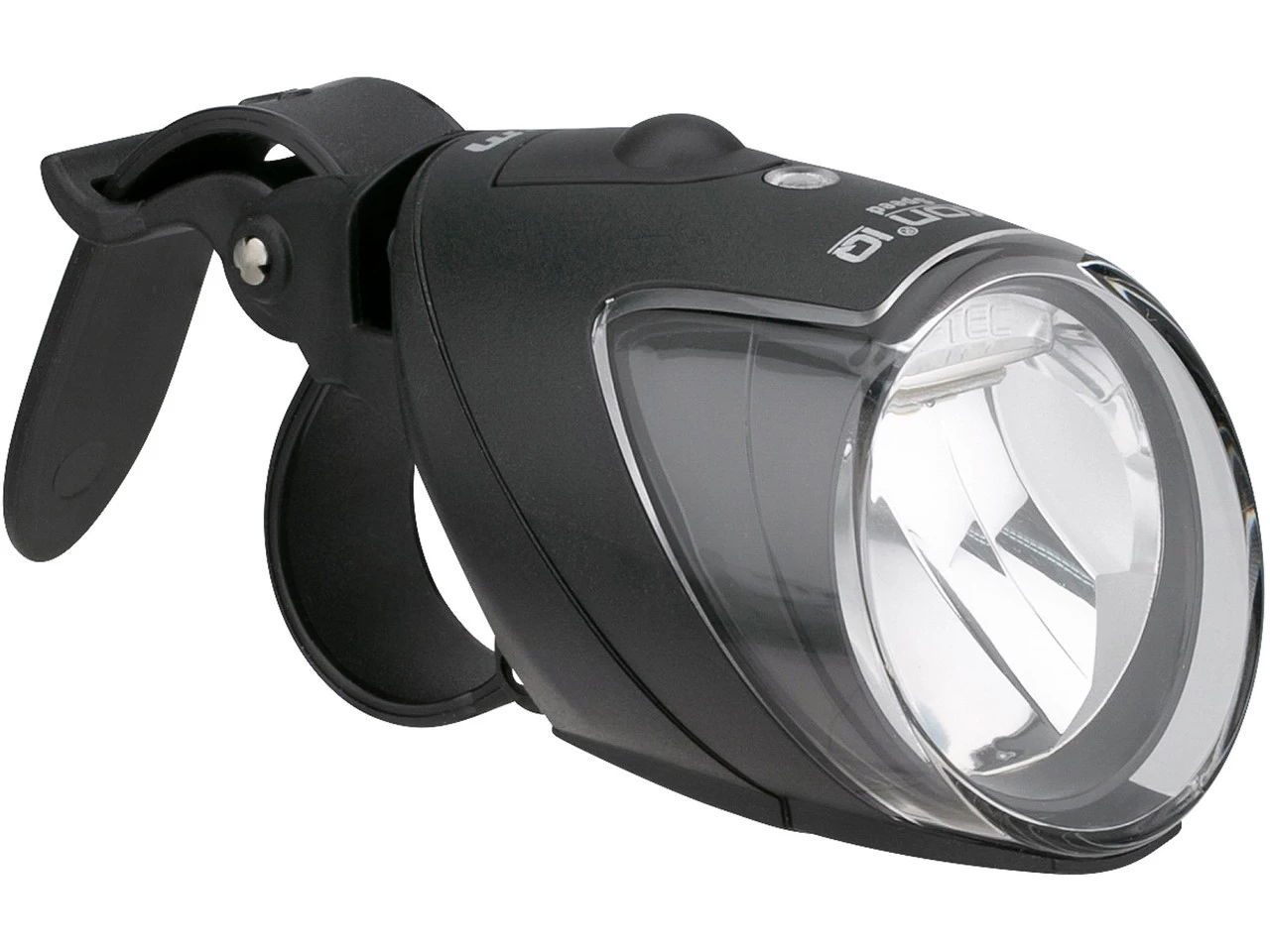 Spezifikationen:Ausführung:Frontlicht (weiß)Montage:UniversalhalterLeuchtmittel:1 x LEDLeuchtkraft:90 LuxLeuchtdauer:ca. 10 Stunden (HighPower) / ca. 50 Stunden (City-Eco-Modus)Betriebsmittel:Akku (NiMH)Technische Daten:Ladezeit:ca. 4 – 5 StundenMaterial:KunststoffStandlicht:Ja (abschaltbar)Schalter:Ein / AusFreigaben:Zulassung im Straßenverkehr:Ja, für Fahrräder (nach §67 StVZO)Prüfziffer:K ~~ 431 / 568Features:spezielle IQ-Premium Lichttechnikbeste Ausleuchtung mit nur 1 LEDdoppelt breite und bestechend homogene Ausleuchtung des WegesHochleistungs-LED mit KühlkörperScheinwerfer neig- und schwenkbarsehr kleine Bauformkomplettes Set inkl. Akku und LadekabelHerstellernummern:1932QLA