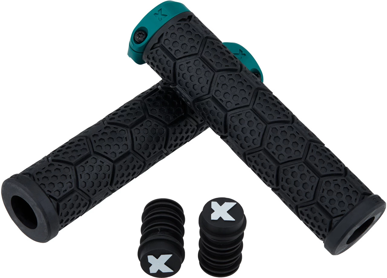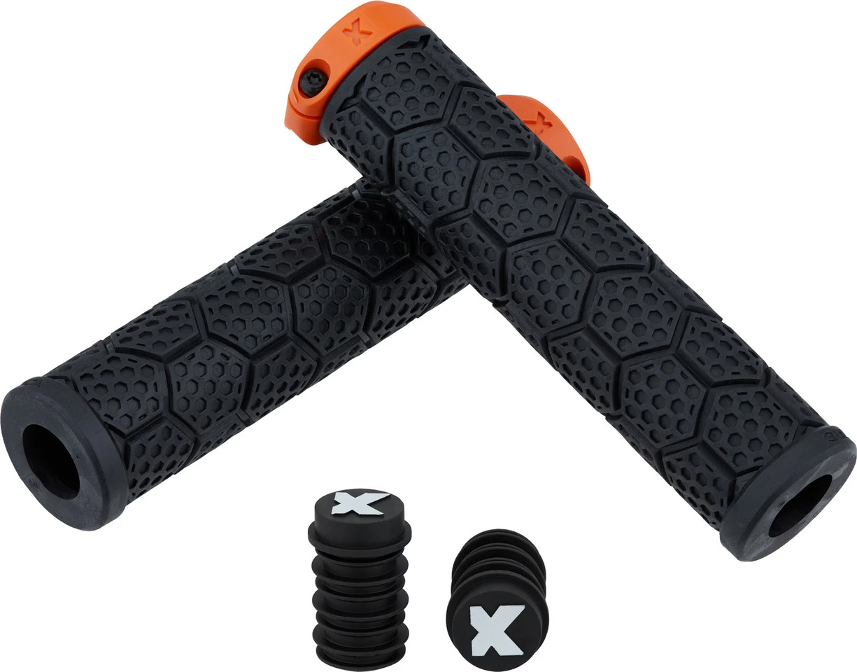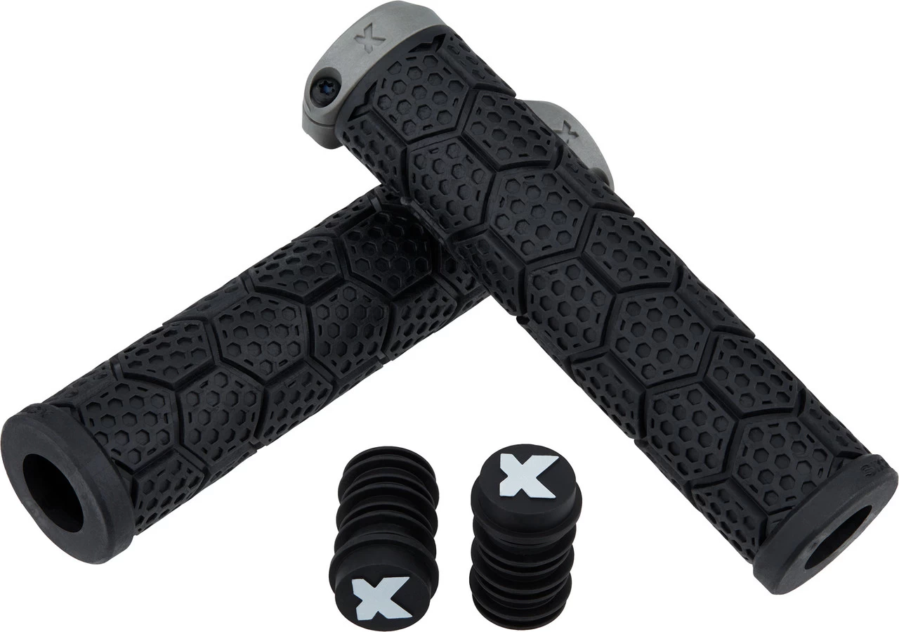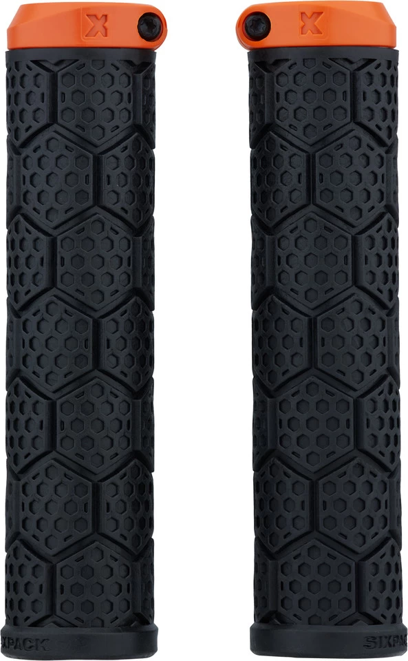 Die dickeren D-Trix PA Lenkergriffe von Sixpack Racing mit Polyamid-Klemmring und Wabendesign