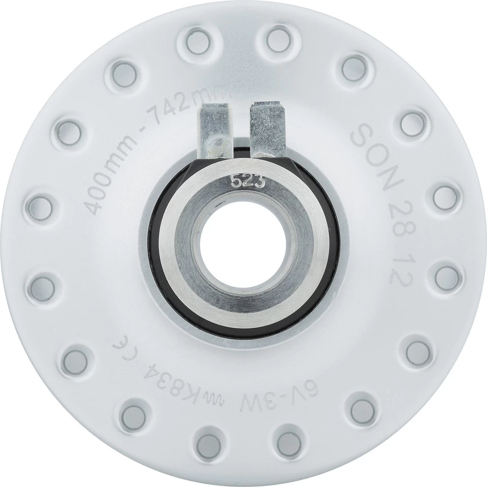 Spezifikationen:Elektrische Leistung:6V/3W (nach StVZO)Wirkungsgrad:65 % bei 15 km/h im 28″ -RadLeistungsaufnahme im Leerlauf:0,4 W bei 15 km/h im 28″ -RadEinbaubreite:12 x 100 mm SteckachseLochzahl:24 Loch, 28 Loch, 32 LochBremssystem:Disc Center LockTechnische Daten:Serie:Son DeluxEinsatzbereich:Road, Gravel, Touring & Trekking, CityMaterial Nabenkörper:Aluminium (6082-T6)Lagerung:Rillenkugellager 629-2RSH (SKF)Dichtung:Spaltdichtung, Dichtscheiben und DruckausgleichsystemFlanschabstand (L/R):48 mm (23 mm/25 mm)Teilkreisdurchmesser (L/R):54 mm/54 mmSpeichenlochdurchmesser:2 mmAnschluss für Stromausgang:4,8 mm Flachstecker, 2-polig, massefreiFreigaben:Zulassung im Straßenverkehr:Ja, in Verbindung mit LED-Lampen (SON Edelux / Edelux II)Prüfziffer:K~~687Kompatibilität:für 16″ bis 28″ Räder (400-716 mm)für 12-mm-Steckachsefür 3 mm KoaxialkabelFeatures:Neodym-Eisen-Bor Magnetrotor, 26-poligHohlachseAchsenden aus rostfreiem Stahlumrüstbar auf 9 mm Schnellspanner mit optional erhältlichem AdapterHerstellernummern:schwarz 24 Loch:392410schwarz 28 Loch:392810schwarz 32 Loch:393210silber-eloxiert 32 Loch:393290Lieferumfang:1 x Nabendynamo SON Son Delux 12 Disc Center Lock1 x Anschlussmaterial-Set für Scheinwerfer