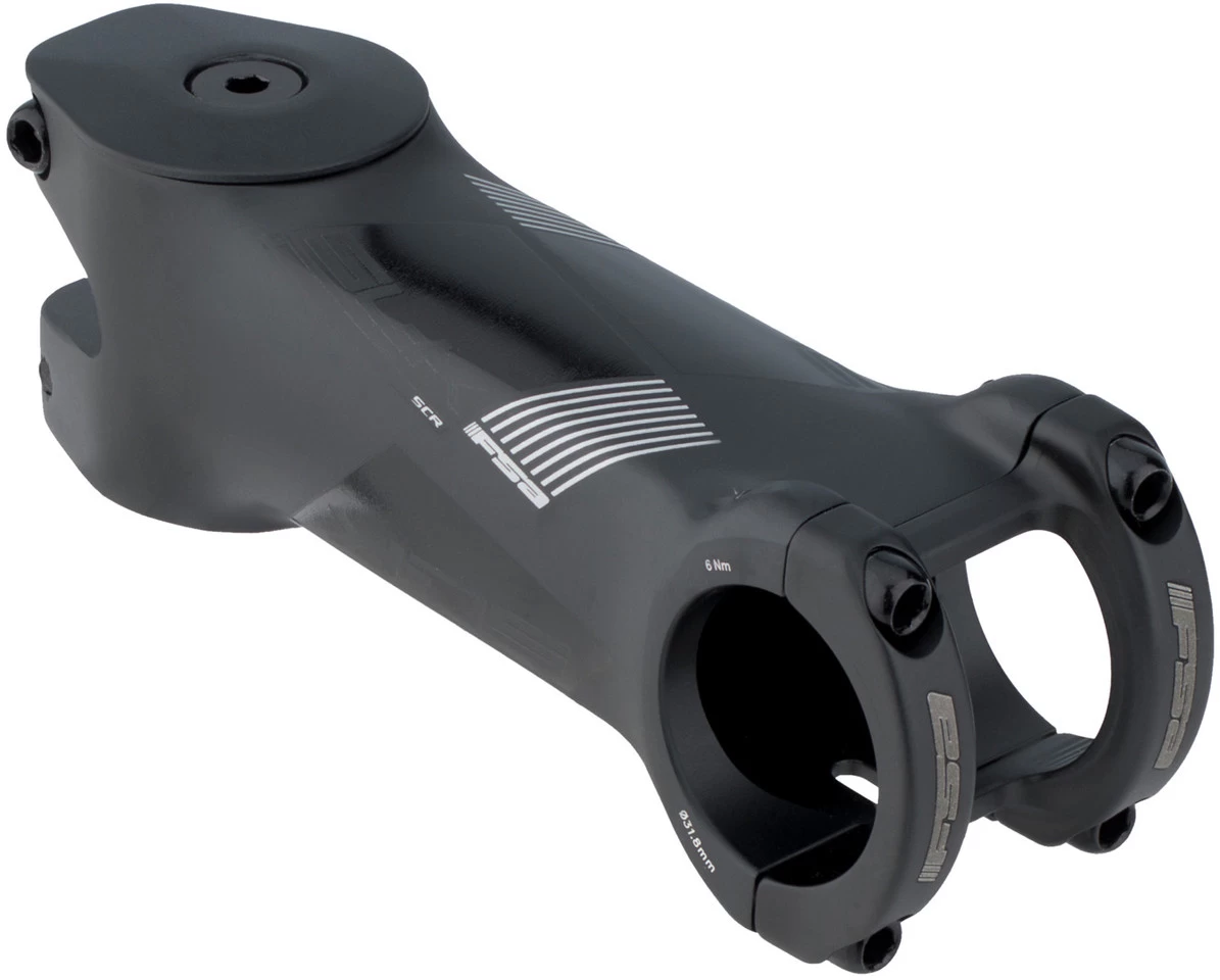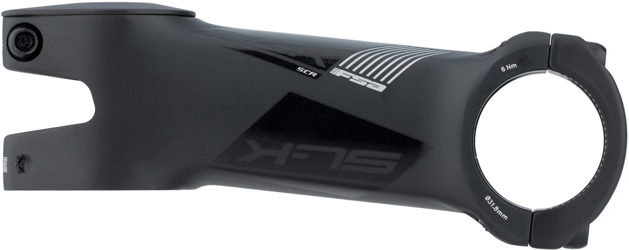 Der SL-K SCR Road-Vorbau von FSA ist für eine halbintegrierte Kabelführung ausgelegt, lässt sich im Winkel von 6° aufsteigend oder abfallend montieren und ist dank der mitgelieferten Distanzhülse sowohl mit 1 1/4″ wie mit 1 1/8″ Gabelschäften kompatibel.