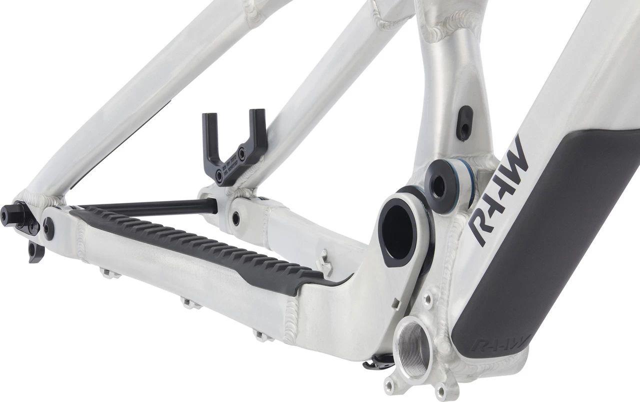 Das RAAW Mountain Bikes Jibb Rahmenkit für 29″ bildet hier ein Traum-Trio mit einem TTX 2 Air Luftfederdämpfer und einer RXF36 m.2 Federgabel von ÖHLINS. Damit erhältst Du die Hauptbestandteile für ein spielerisches Bike auf All-Mountain- und Enduro-Trails. Bei der Federgabel mit 36 mm Standrohrdurchmesser stellst Du High- und Low-Speed-Druckstufe ein, Unebenheiten schluckt sie einfach weg. Auch der TTX 2 Air Dämpfer ermöglicht die Einstellung von High- und Low-Speed-Druckstufe, zudem punktet er mit sensiblem Ansprechverhalten und hervorragender Kontrolle. Wie schon beim Madonna V2.2 setzen RAAW auch beim Jibb jetzt auf ein eigenes Steckachssystem, welches die Steifigkeit erhöht und das Lockern der Achse während der Fahrt verhindert. Das Rahmendesign unterstützt einen aktiven Fahrstil und verleiht Dir Selbstvertrauen und Kontrolle. Die ausgewogene Geometrie ermöglicht eine zentrale Sitzposition und sorgt für ausreichend Traktion. Beim Jibb ist dieselbe Detailverliebtheit erkennbar wie beim Geschwisterbike Madonna. So ist beispielsweise auch beim Jibb die Bremsaufnahme ein eigenes Bauteil. Für verschiedene Bremsscheibengrößen benötigst Du also keine zusätzlichen Adapter und die präzise Ausrichtung des Bremssattels ist kein Problem. An zwei Schraubgewinden am Oberrohr kannst Du eine Zubehörtasche (nicht im Lieferumfang) für Werkzeug und Ausrüstung befestigen, so hast Du das Wichtigste immer dabei. Die Dämpferhardware wird bereits mitgeliefert, sodass Du keine Einbaubuchsen benötigst. Mit Steckachse, Acros Steuersatz, Sattelklemme und Schutzfolien-Kit hast Du bereits die Basics für Deinen Aufbau parat.