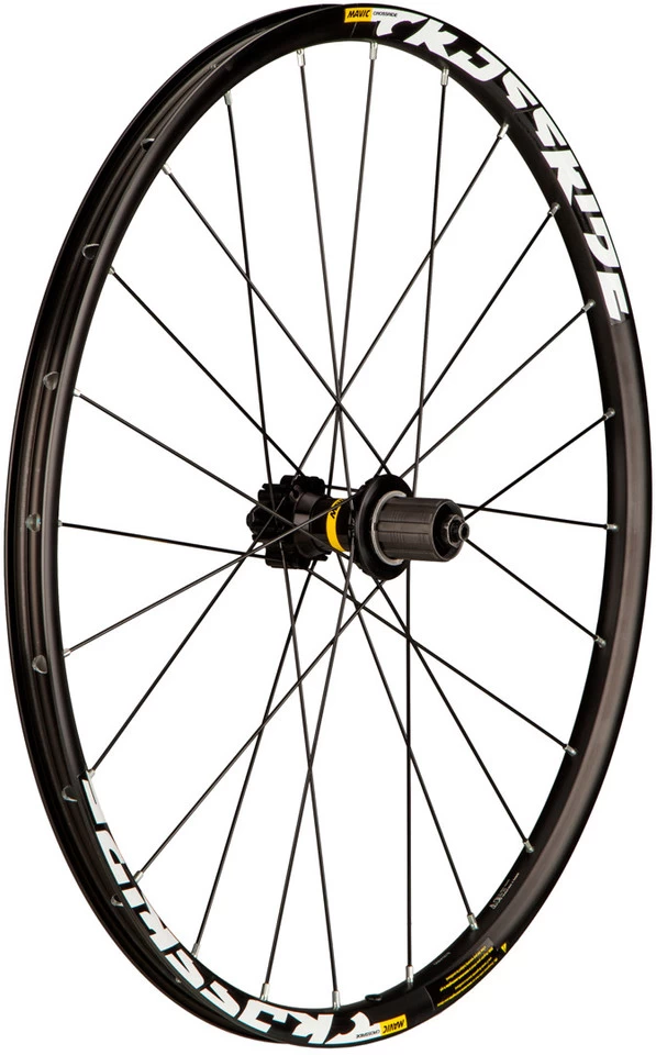 Auch unspektakuläre Produkte haben eine Optimierung verdient. Die Bauart ist bewährt, aber das Crossride FTS-X hat jetzt eine gesteckte Felge bekommen, die breiter und leichter ist, um dem Fahrer mehr Komfort und Kontrolle zu bieten. In der Hinterrad-Nabe kommt der bewährte Mavic FTS-X-Freilauf zum Einsatz – das ergibt einen Laufradsatz mit überragendem Preis/Leistungs-Verhältnis. Je 24 gerade Rundspeichen sorgen für Steifigkeit und Zuverlässigkeit, typisch für die Laufräder von Mavic, bei denen sämtliche Bauteile gemeinsam entwickelt und getestet werden, um Performance und eben Zuverlässigkeit sicherzustellen.