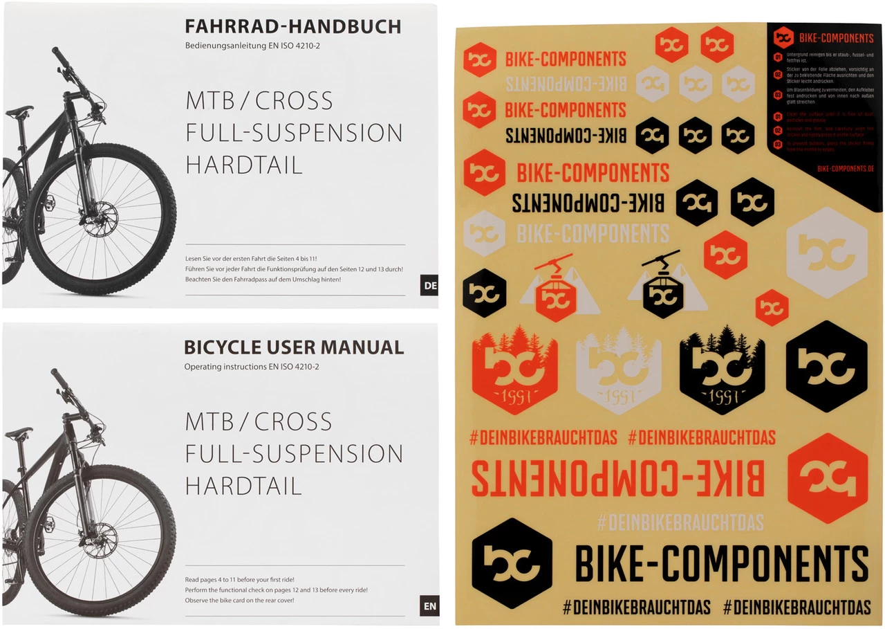 Empfohlene Körpergröße:195 cm – 210 cmStack:655 mmReach:523 mmSitzrohrlänge:510 mmEffektive Oberrohrlänge:710 mmSteuerrohrlänge:140 mmKettenstrebenlänge:445 mmRadstand:1294 mmBB Drop:55 mmSitzwinkel:74°Lenkwinkel:65°Lieferumfang:1 x MTB-Rahmen bc original Podsol1 x Ersatz-Ausfallende schwarz1 x Ersatz-Ausfallende orange8 x Befestigungsschraube für Ausfallenden1 x Steckachse bc original1 x Steckachshebel mit integriertem T251 x Schraubsattelklemme mit integriertem Staubschutz2 x Flaschenhalterschraube T253 x Kabelführung mit Befestigungsschrauben4 x Kabelbinder4 x C-Clip1 x Aufkleberbogen bc basic A4