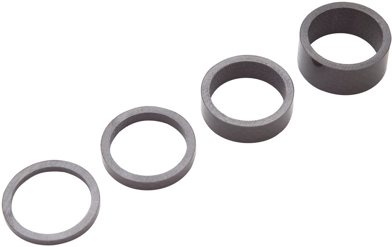 Superleichter, 4-teiliger Spacer-Satz aus Carbon für 1 1/8″ oder 1 1/4″ Schaftdurchmesser.