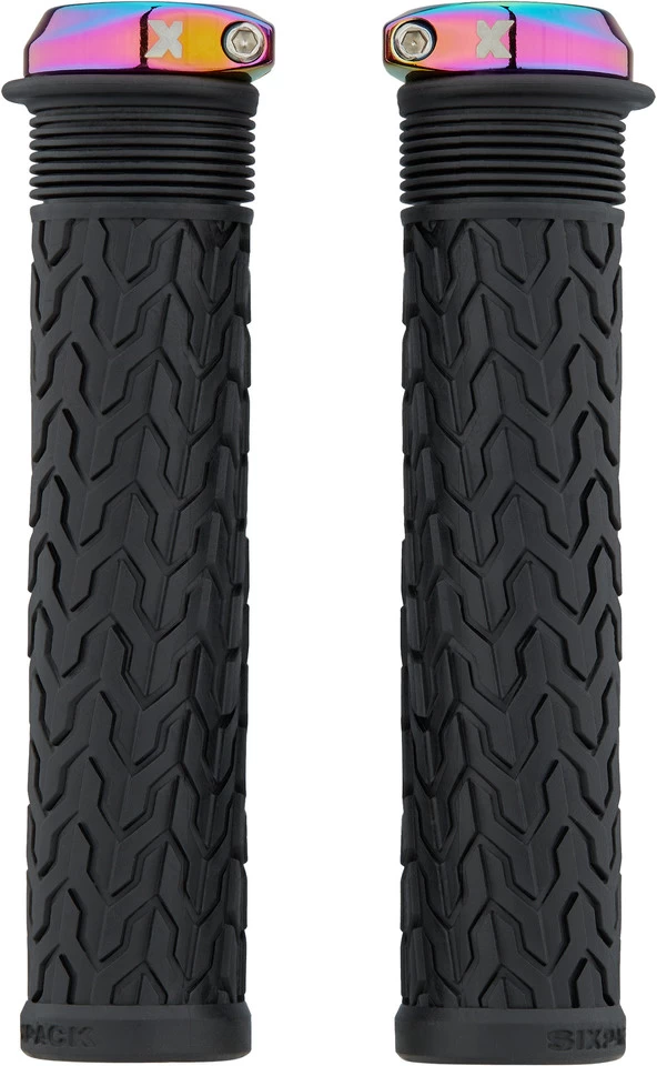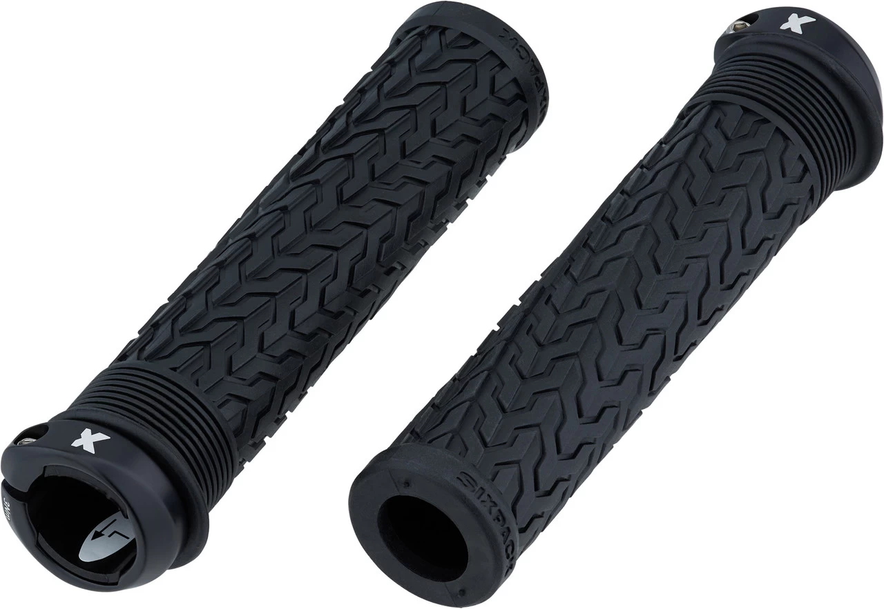 Die Sixpack Racing S-Trix AL Lenkergriffe haben einen Durchmesser von 30 mm und weisen neben einem Profil aus Sägezahnmuster und Lamellen einen Klemmring aus CNC-gefertigtem Aluminium auf.