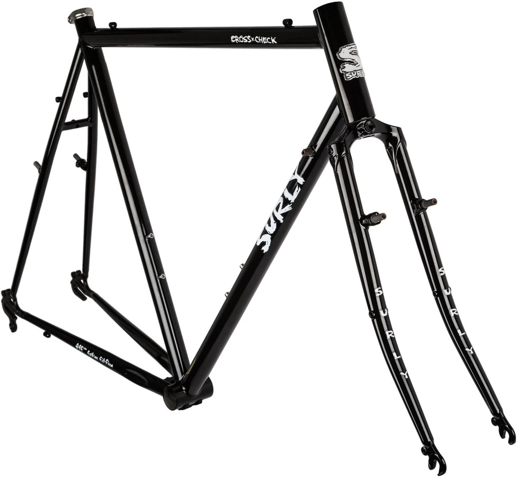 Das Surly Cross Check Rahmenkit ist schon fast ein Alleskönner. Dem Design nach ist es ein Cyclocross-Bike, aber das ist nicht sein einziger Zweck! Cross Check wird Dich genauso gut durchs Gelände bringen wie durch die Stadt. Dieser Rahmen ist auf der Straße zu Hause, auf den Trails, auf Schotter und er nimmt sowohl ziemlich dicke wie schmalere Reifen auf. Du kannst aus ihm ein Rad mit Schaltung, ein Singlespeed oder ein Fixie machen. Daher ist das Surly Cross Check auch viele Jahre nach seiner Einführung immer noch so populär.