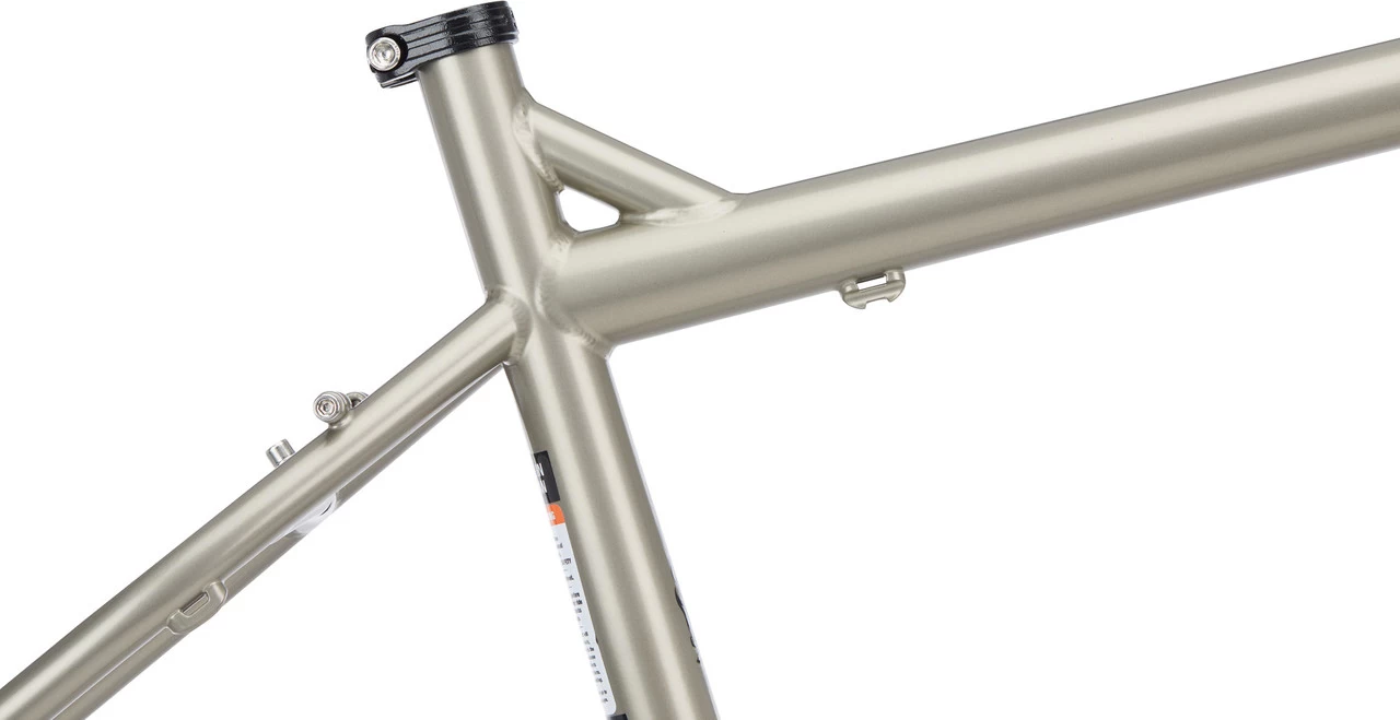 Das Surly Ogre Rahmenkit ist das ultimative Stahlvehikel. Es fährt Dich wochentags ins Büro und bringt Dich am Wochenende raus aus der Stadt. Es schlägt sich bestens auf Cross-Country-Touren und auf dem Singletrack. Auch auf Asphalt und Gravel macht es eine super Figur. Und Du kannst es voll genug packen, dass Du nicht nach Hause zurückkehren musst, wenn Du nicht magst. Im Gegensatz zu früheren Modellen kommt das aktuelle Ogre ohne Cantisockel und präsentiert sich als ein Disc-Only-Ungetüm. 29er Felgen für Felgenbremsen sind nämlich zunehmend schwerer zu finden. Ansonsten begeistert dieser Surly Rahmen weiterhin durch seine Anlötteile, sein Gnot Boost Spacing, seine nicht federwegskorrigierte Geometrie und die enorme Reifenfreiheit, die 27,5+ und 29″ Reifen erlaubt. Mit dem Ogre kannst Du die meisten Ideen umsetzen, die Dir so im Kopf rumschwirren.